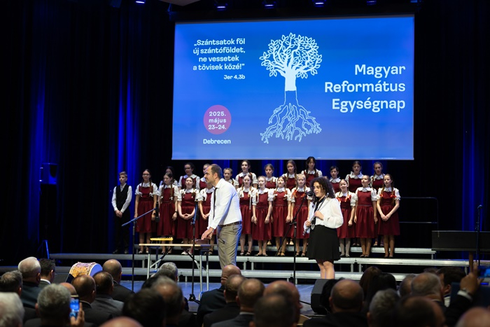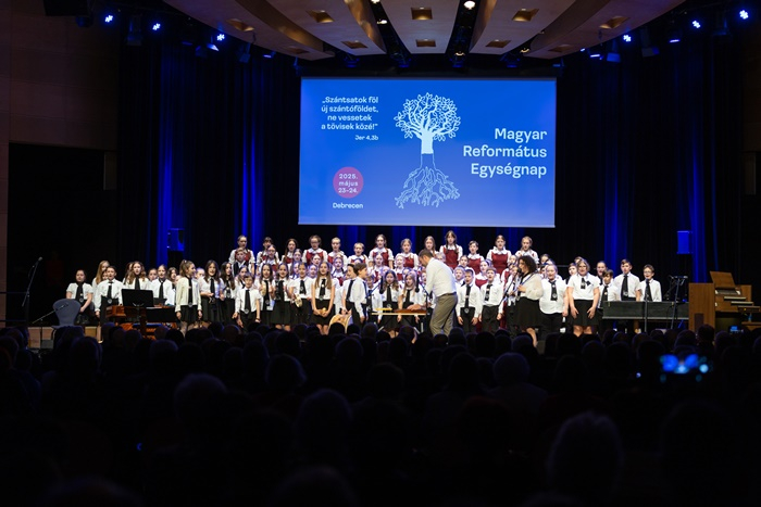 Gyerekek énekével kezdődött a református értékeket felvonultató gálaest. A Kölcsey Ferenc Református Gyakorló Általános Iskola Kicsinyek Kórusa és a Vox Iuventutis Gyermekkar tagjai a közönséget is bevonták a nyitányba a Nagy hálát adjunk az Atya Istennek kezdetű dicséret közös eléneklésével.
